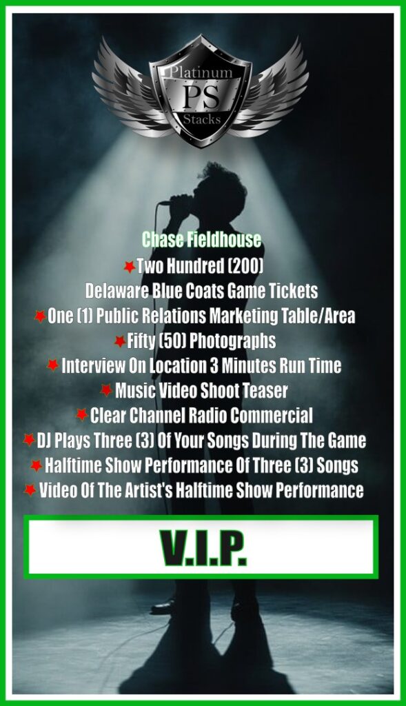 Platinum Stacks World has Partnered with The Philadelphia 76ers and their NBA G League team The Delaware Blue Coats to bring you The Platinum Stacks Music Expo. Musical artists are welcome to promote their latest project in the arena during the game. Please complete the Registration Form below, then select and complete your payment for the public relations marketing package that best suits your campaign.